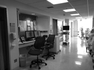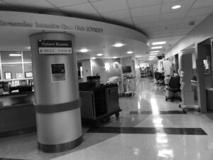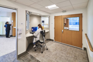 Before: The previous unit reflected an era of care delivery that prioritized efficiency over experience. Tight corridors, limited daylight, and dated finishes constrained both staff workflows and patient comfort. While the core infrastructure remained sound, it needed reconfiguration to meet today’s expectations for flexibility, visibility, and infection control.